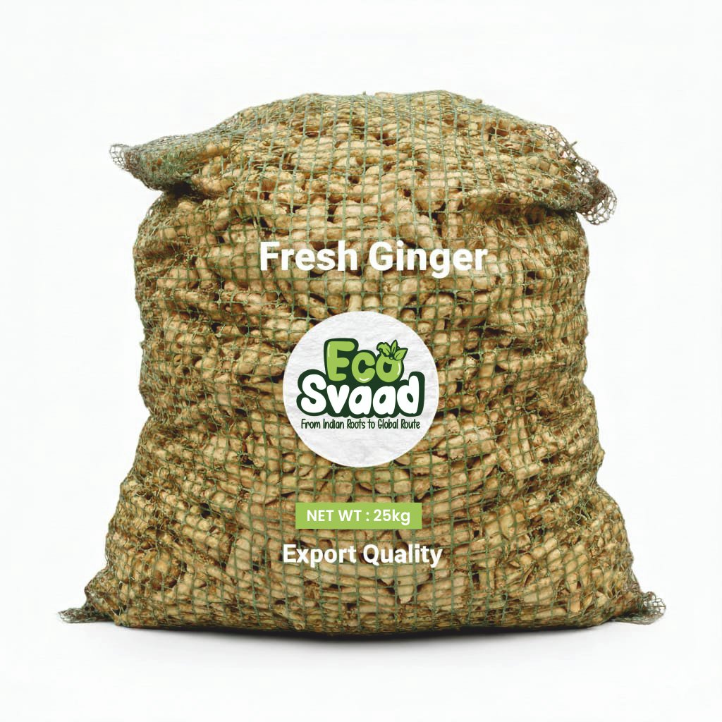 At Ecosvaad, we export premium-quality fresh ginger sourced from trusted farms in Maharashtra, Kerala, and Northeast India. Known for its strong aroma, bold flavor, and high oil content, Indian ginger is a staple for the global food, beverage, and pharmaceutical industries.